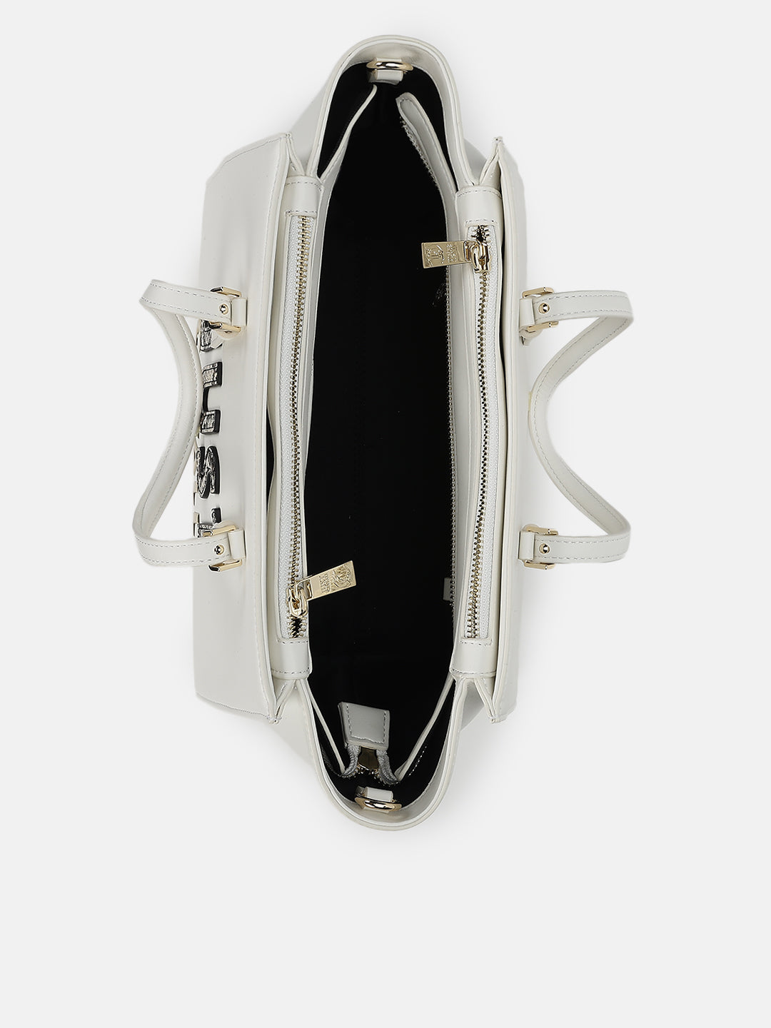 Effortlessly chic, this white tote bag is crafted from durable 100% polyester fabric. Its solid design complements any outfit, while its spacious interior provides ample room for your essentials. Perfect for everyday use or a stylish weekend getaway.