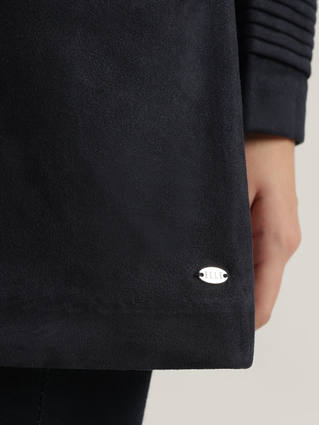 Women Navy Blue Solid Shawl Collar Full Sleeves Coat