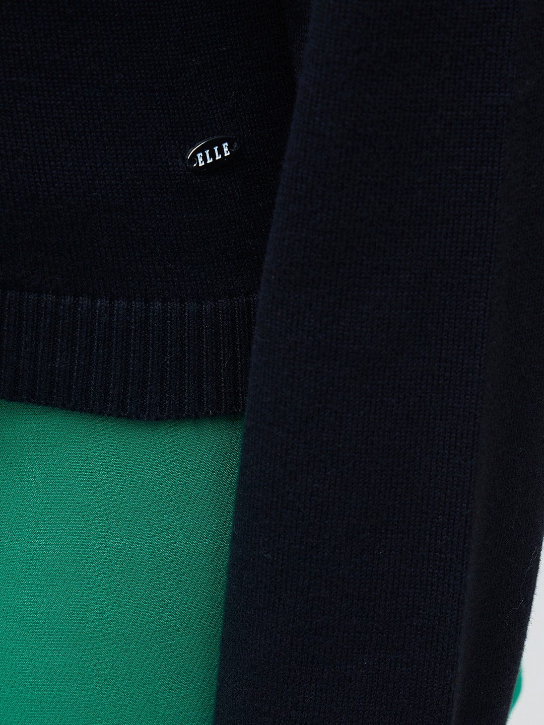 ELLE Women Black Cotton Solid High Rib Neck Sweater