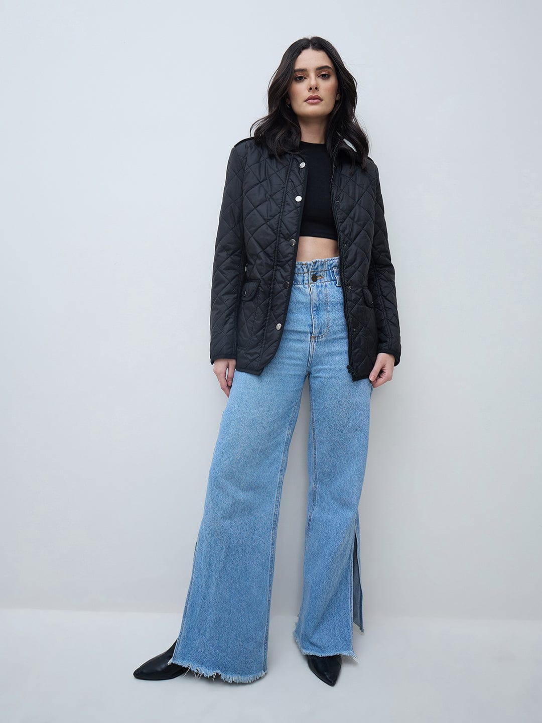 Elle Women Black Solid Collared Jacket