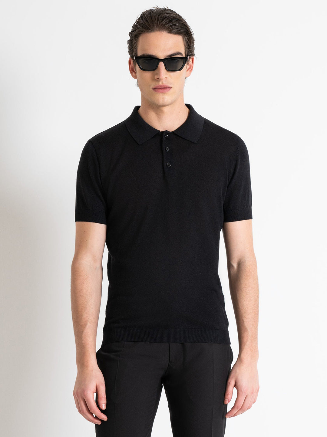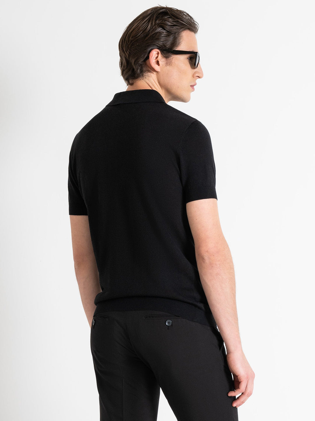 Antony Morato Men Black Solid Polo Collar Short Sleeves Tshirt