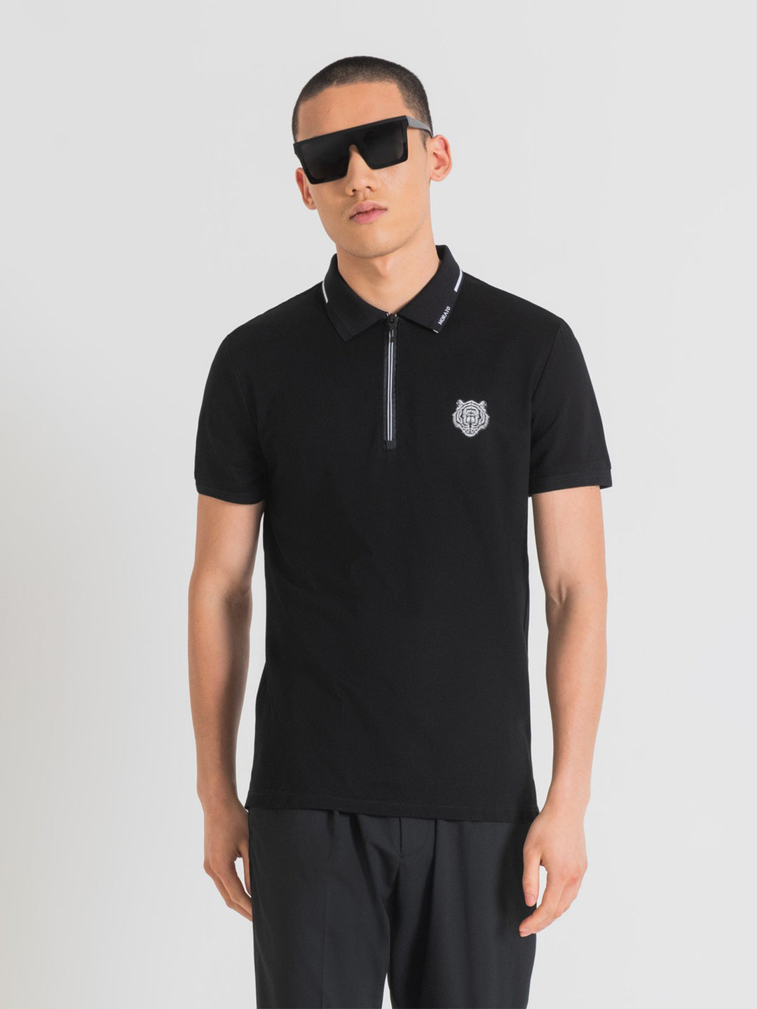 Elevate your casual wardrobe with this sleek black t-shirt, crafted from pure cotton for ultimate comfort. Featuring a slim fit and a stylish half zip closure, this short-sleeved collared piece effortlessly blends sophistication with modern flair. Perfect for any occasion, it’s a versatile staple that defines effortless style.