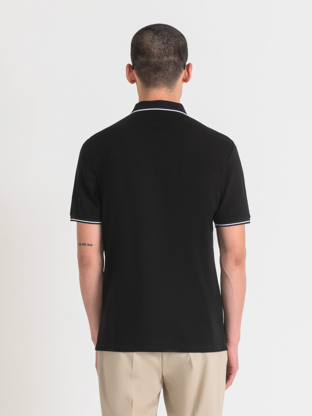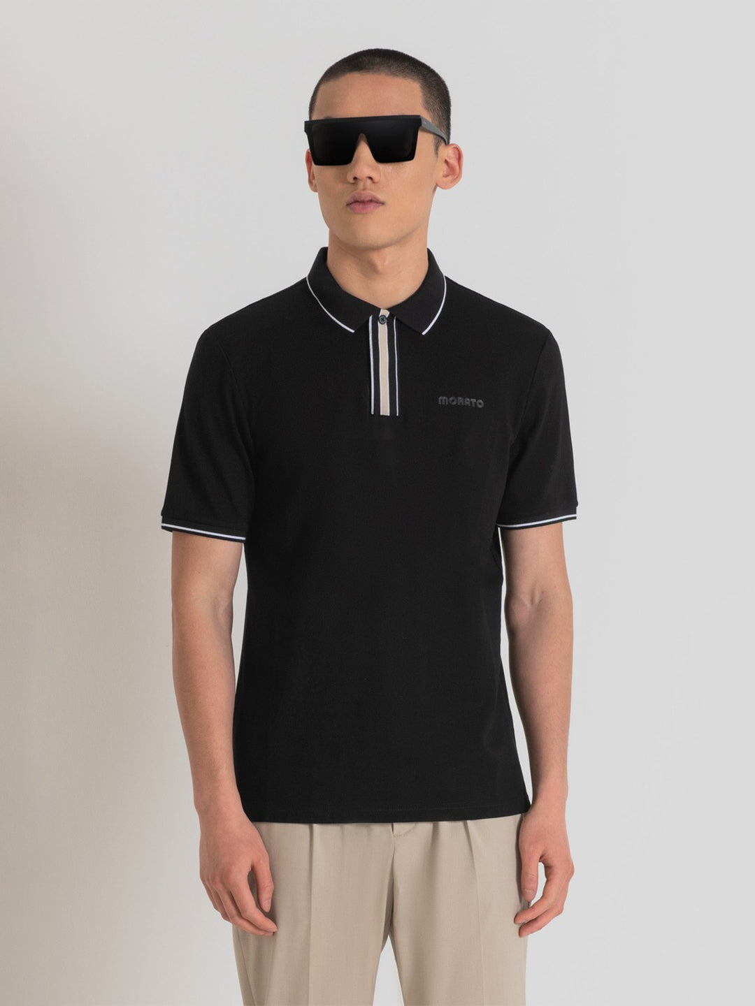 Antony Morato Men Black Solid Collared Short Sleeves Polo Tshirt