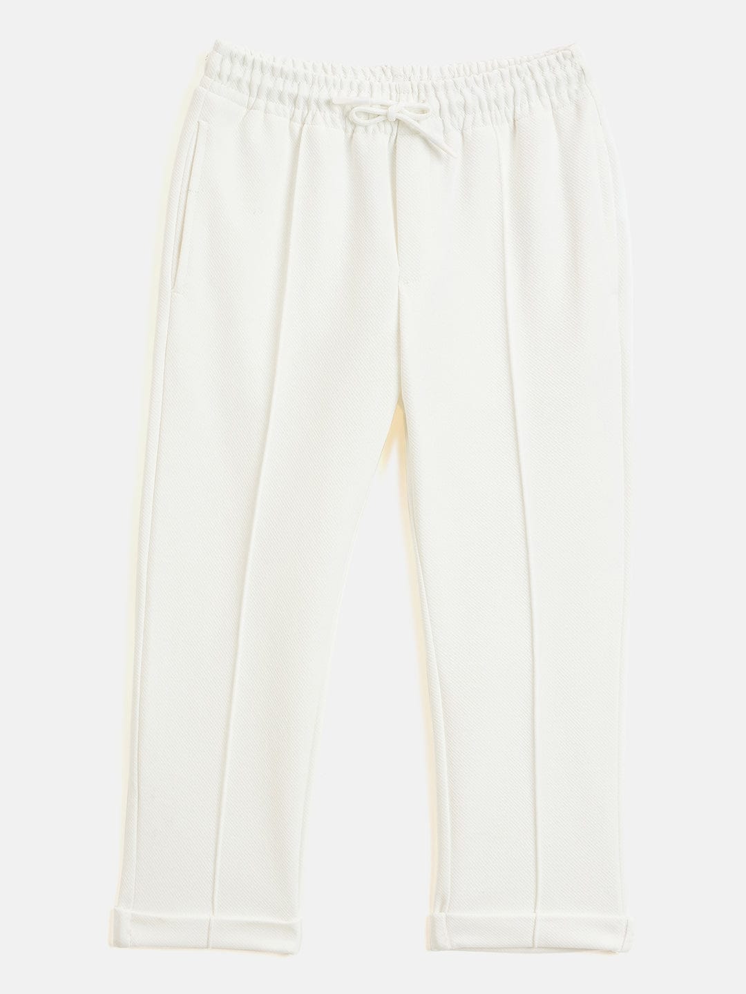 Boys Cream Regular Fit Solid Sweatpant
