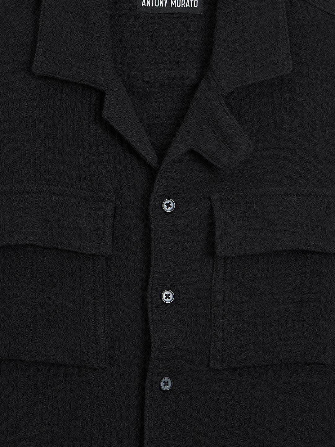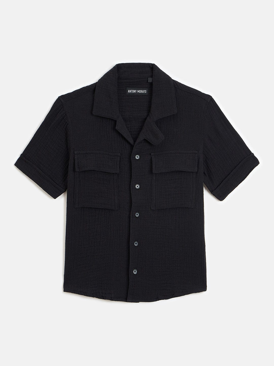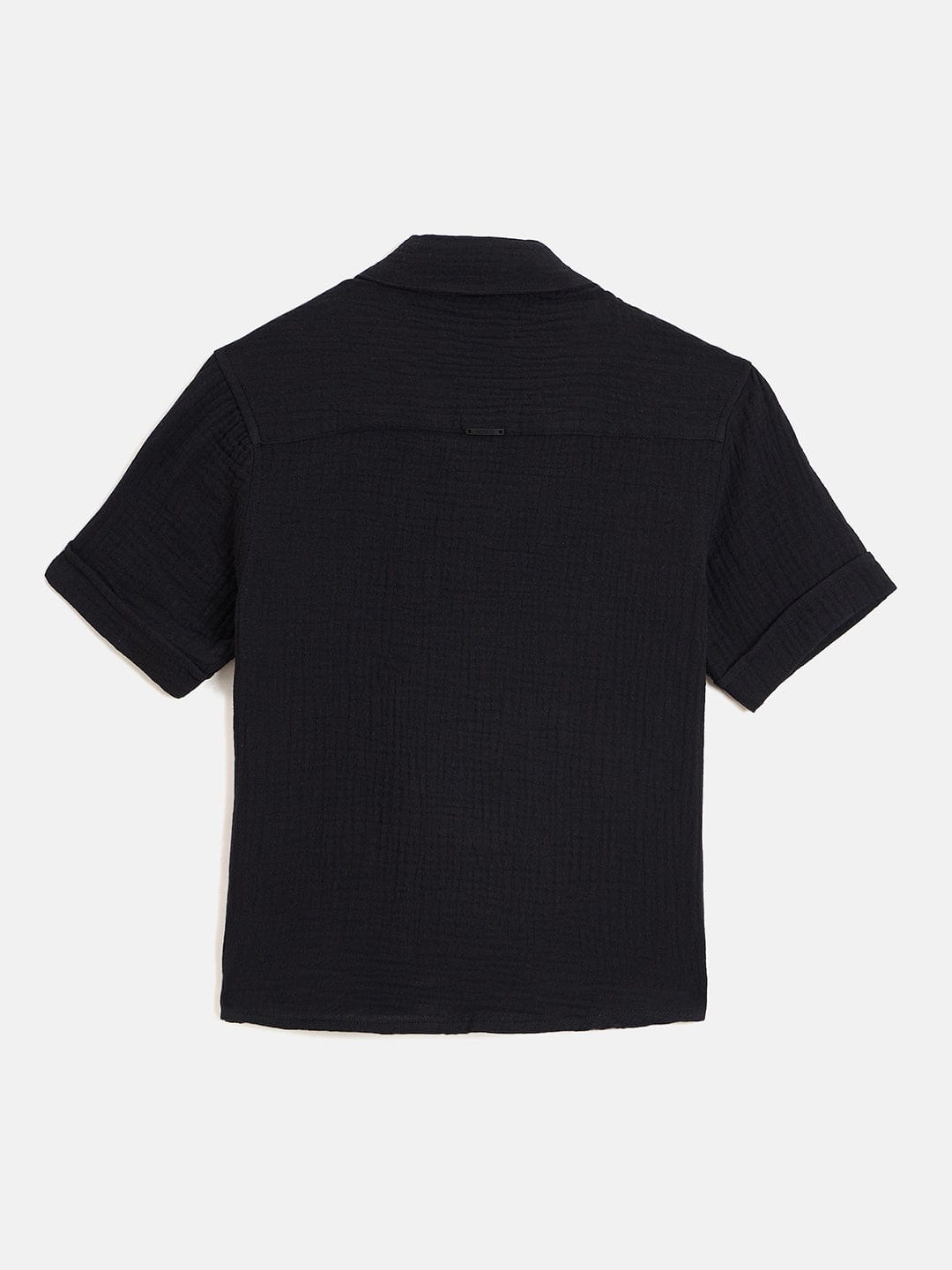 Discover the perfect blend of style and comfort with our boys' black shirt. Crafted from pure cotton fabric, this shirt offers a soft and breathable feel, ideal for all-day wear. The regular fit ensures a relaxed yet polished look, while the solid pattern adds a touch of classic elegance. Featuring short sleeves and a resort collar, it's perfect for casual outings or special occasions. The button closure provides easy wearability, making it a versatile addition to any young wardrobe. Elevate your child's style effortlessly with this timeless piece.