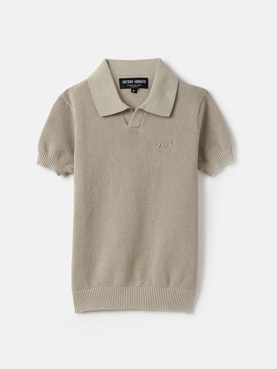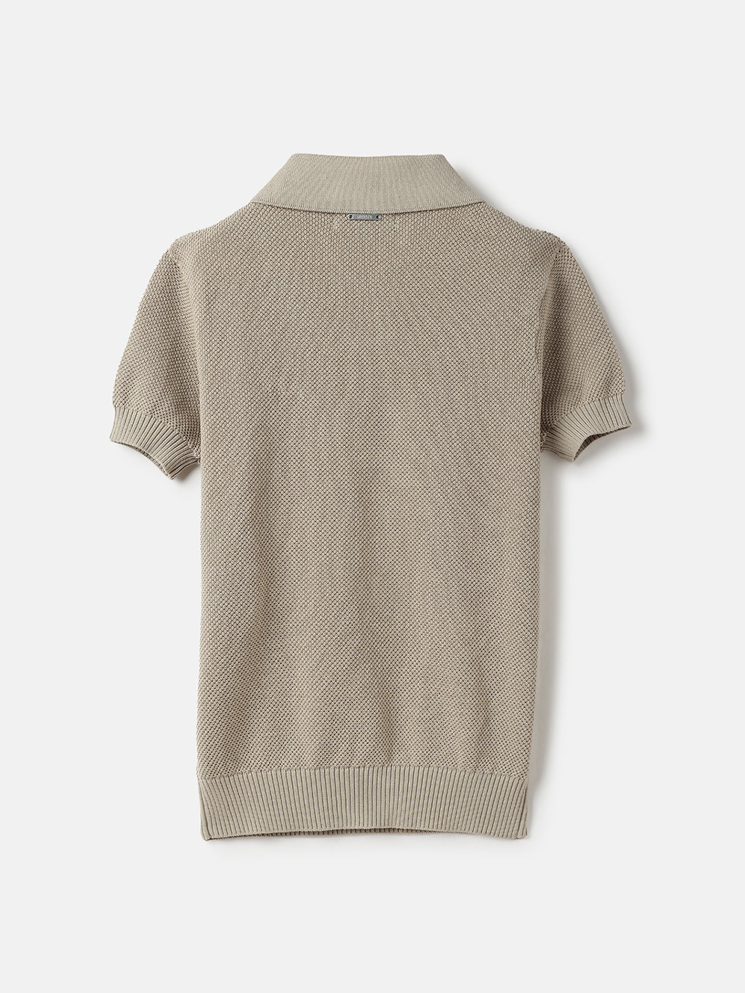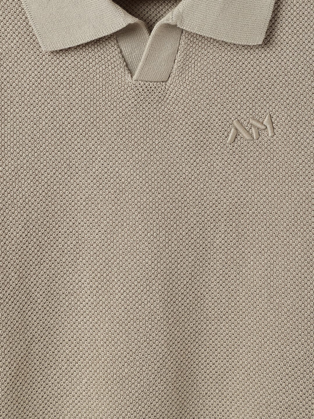 Introducing our boys' beige t-shirt, designed for comfort and style. This regular fit tee features a subtle knit textured pattern that adds a touch of sophistication to any outfit. Crafted from high-quality cotton fabric, it ensures breathability and softness for all-day wear. The short sleeves and johny collar provide a classic look, while the pull-on closure makes dressing easy. With its stretchable solid design, this t-shirt offers flexibility and freedom of movement, perfect for active days. Ideal for casual outings or playdates, this versatile piece is a must-have in every young wardrobe.