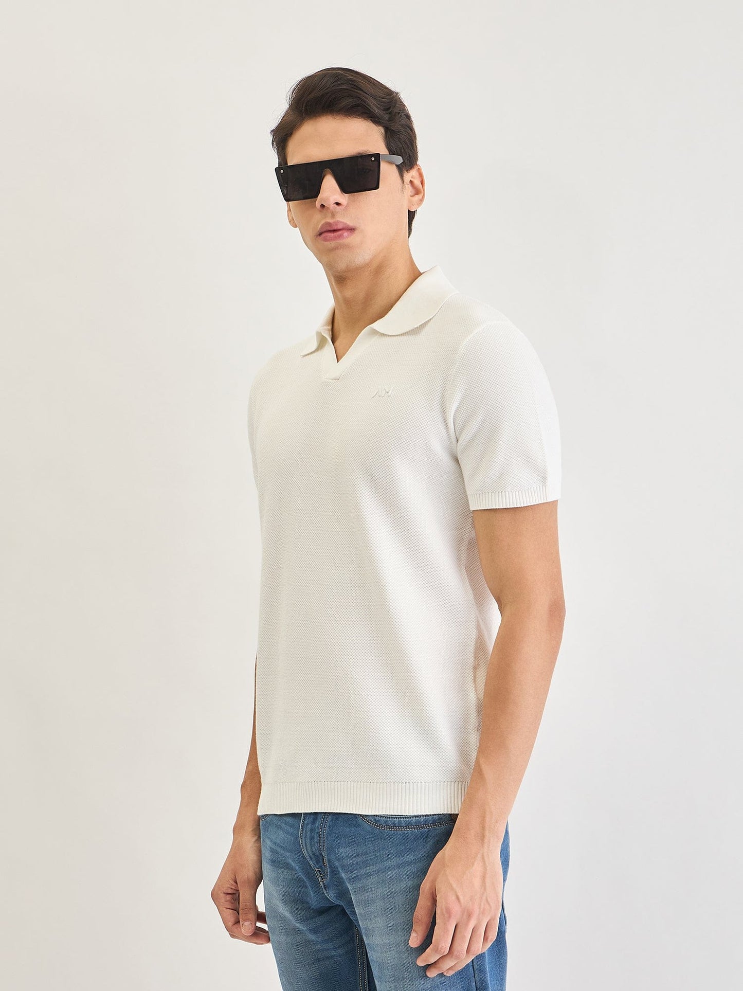 Discover the perfect blend of comfort and style with our cream-colored stretchable t-shirt for men. Crafted from pure cotton fabric, this regular fit tee offers a soft, breathable feel ideal for everyday wear. The textured pattern adds a touch of sophistication, while the short sleeves and Johny collar provide a modern twist. Designed with a convenient pull-on closure, this t-shirt ensures easy wearability. Whether you're heading to a casual outing or relaxing at home, this versatile piece is a wardrobe essential.