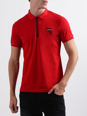 Polo Slim Fit In Mercerized Pique Cotton Fabric With Rubber Logo Print