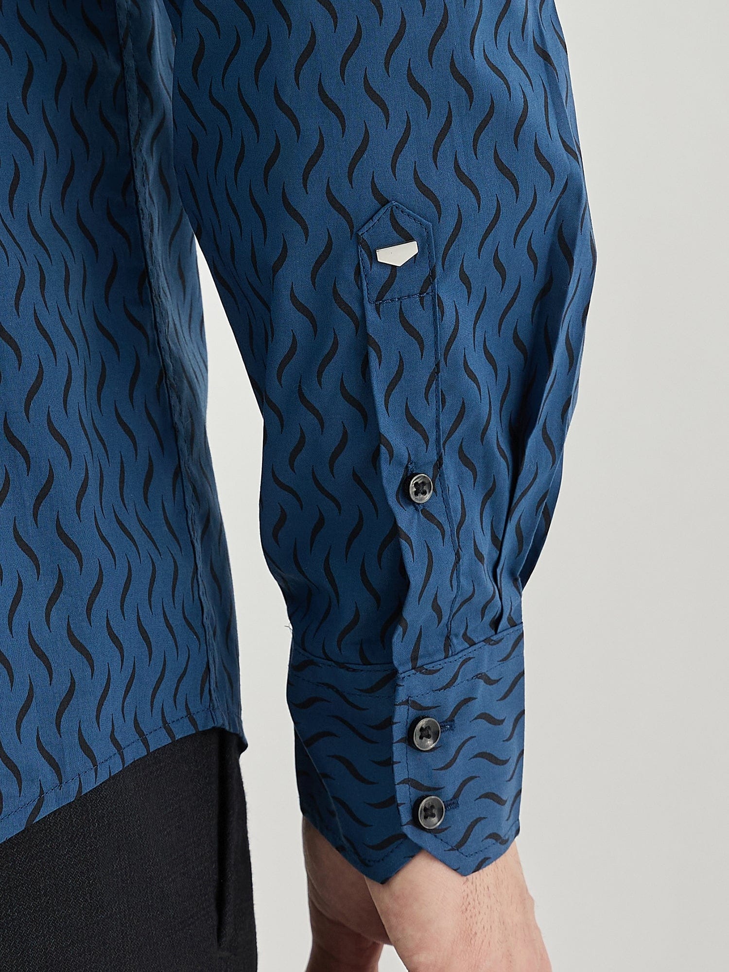 Elevate your wardrobe with this striking blue slim fit shirt, designed for the modern man who appreciates style and comfort. Featuring an eye-catching abstract flame motif pattern, this shirt is crafted from pure cotton fabric, ensuring breathability and softness for all-day wear. The full sleeves and spread collar add a touch of sophistication, making it perfect for both casual and formal occasions. With a convenient button closure, this shirt offers a tailored fit that enhances your silhouette, making it a versatile addition to any outfit.