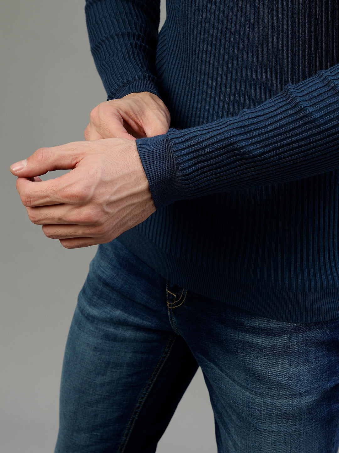 Introducing our stylish Blue Sweater, designed with a High Neck and Full Sleeves for ultimate comfort and warmth. Its Slim Fit silhouette enhances your figure, while the Solid Blue color adds a touch of sophistication. Stay cozy and fashionable with this must-have addition to your wardrobe.