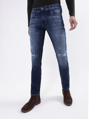 Antony Morato Men Navy Blue Slim Fit Slash Knee Heavy Fade Stretchable Cotton Jeans