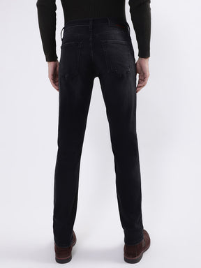 Men Black Low Distress Light Fade Slim Fit Jeans