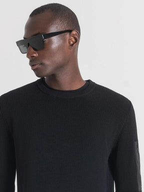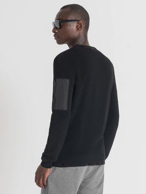 -Sweater Slim Fit In Cotton Viscose Blend Yarn With Pocket In Biodegrading Polyester Fabric