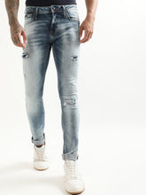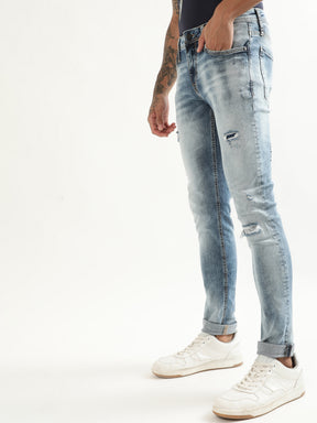 Men Super Skinny Fit Cotton Mildly Distressed Heavy Fade Stretchable Jeans