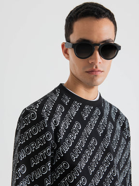 Introducing the iconic Antony Morato Men Black Printed Round Neck Sweatshirt. Crafted with 96% cotton and 4% elastane, this regular fit sweatshirt is designed with stretch terry cotton fabric and logoed for a stylish look.