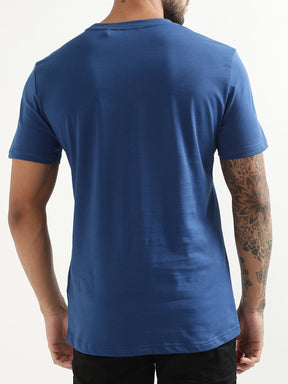 Introducing the iconic Antony Morato Men Blue Printed Round Neck T-Shirt. Crafted from 100% cotton, this slim fit jersey fabric t-shirt features a matt plastic logo print.