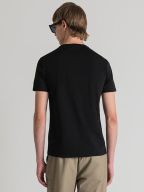 Introducing the iconic Antony Morato Men Black Printed Round Neck T-Shirt. Crafted from 100% cotton, this slim fit jersey fabric t-shirt features a matt plastic logo print.