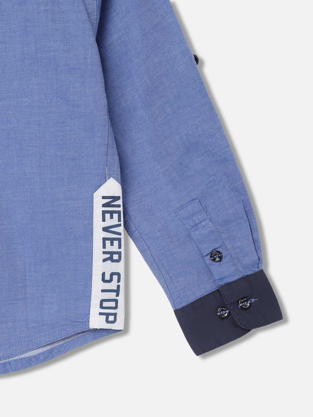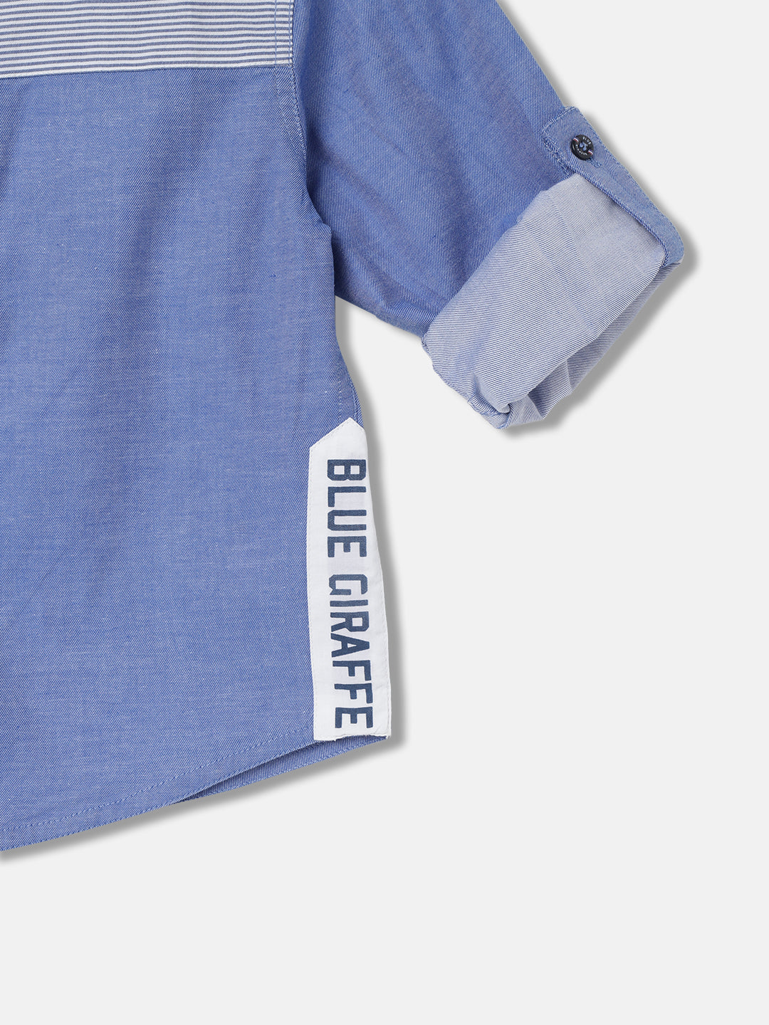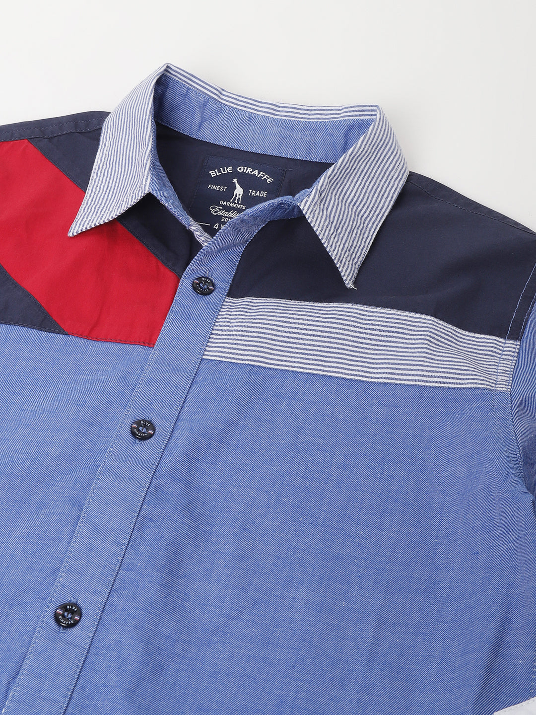 Boys Blue Color-Blocked Spread Collar Full Sleeves Shirt