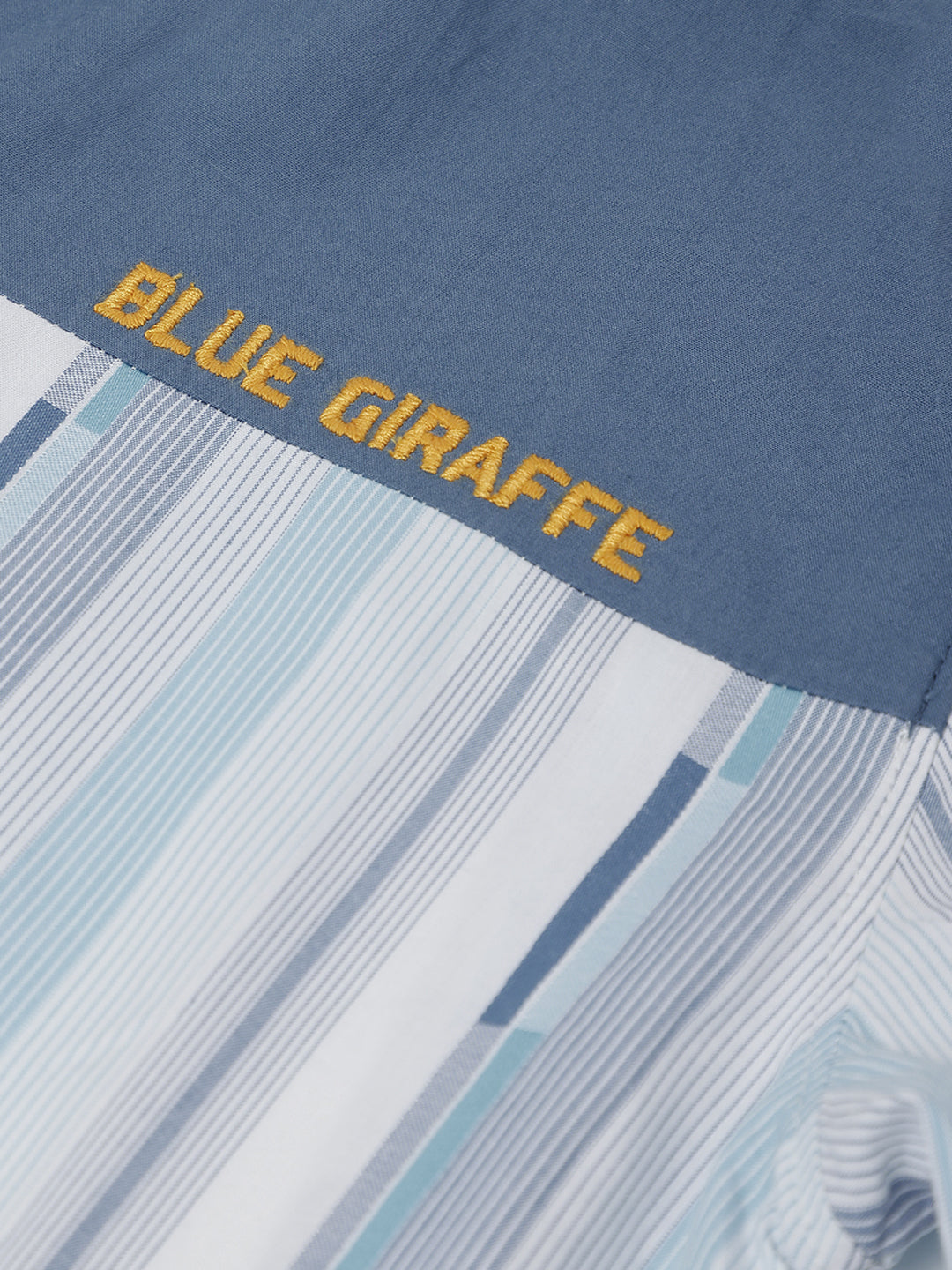 The classic blue stripes and solid yoke make this shirt a timeless piece. Add a touch of style to your wardrobe with this iconic Blue Giraffe Boys Striped Shirt.