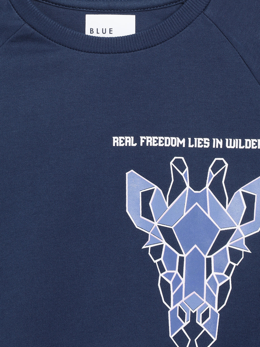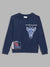 Stay cozy and stylish in this navy sweatshirt for boys. The regular fit and full sleeves provide comfort, while the printed pattern adds a touch of flair. Made from soft cotton fabric, it features a classic round neck and closure for easy wear. Perfect for casual days or outdoor adventures.