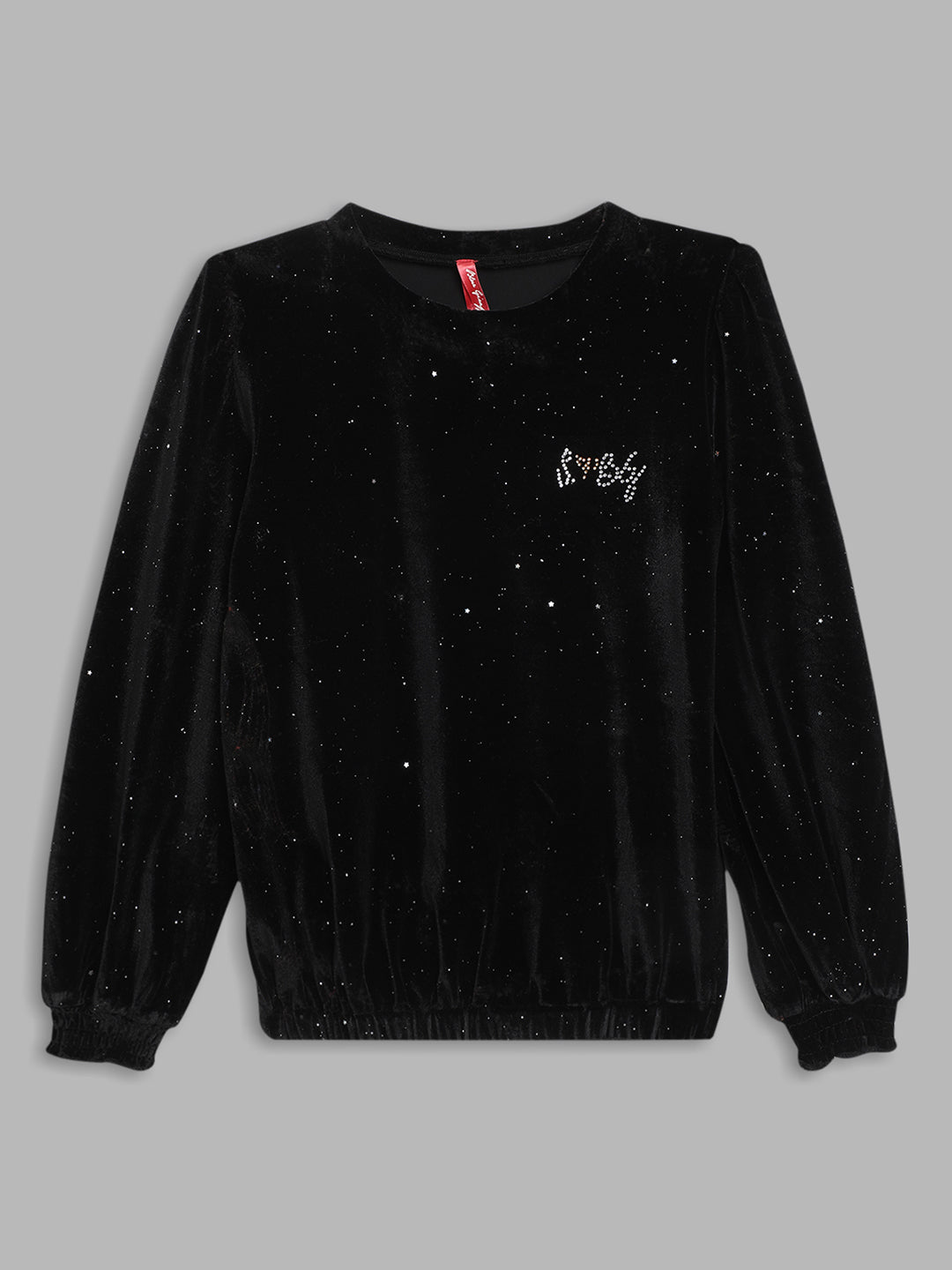Effortlessly chic and versatile, this black top is a must-have for every girl's wardrobe. With its regular fit and solid pattern, it flatters any figure and can be easily dressed up or down. Made from a comfortable blend of polyester and elastane fabric, it offers a perfect fit and all-day comfort. The full sleeves and round neck add a touch of elegance, while the closure ensures a secure and stylish finish.