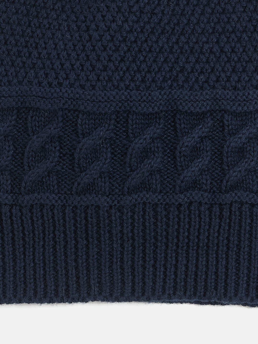 This cozy beanie in a classic blue hue is perfect for keeping your little one warm and stylish. Crafted from soft acrylic knit, it features a comfortable fit and a timeless knitted pattern. The beanie is ideal for everyday wear, whether it's a chilly morning walk or a fun day out. Its versatile design complements any outfit, making it a must-have accessory for your boy's wardrobe.
