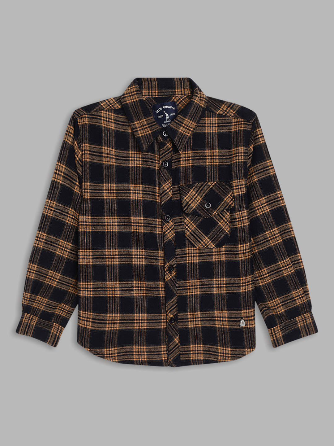Introducing our vibrant multi-color checked shirt for boys! This stylish piece features a regular fit, full sleeves, and a spread collar for a polished look. Crafted from a blend of polyester, viscose, and elastane fabric, it offers comfort and durability. Complete with a button closure, this shirt is a must-have for any fashion-forward young gentleman.