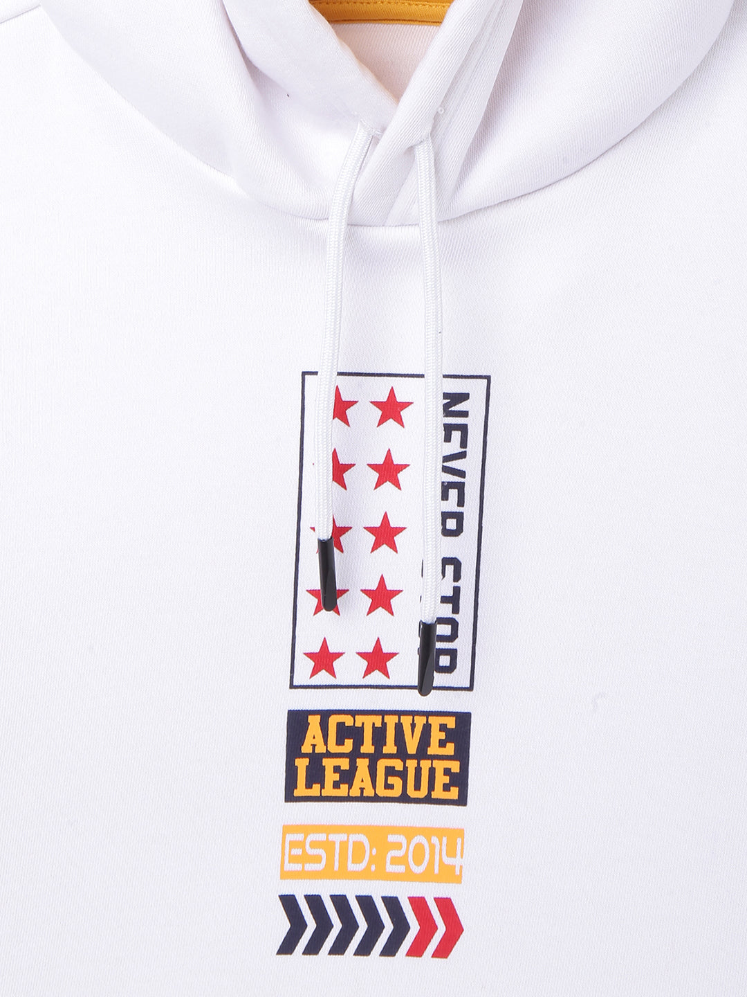 Stay cozy and stylish in this white sweatshirt for boys. The regular fit and solid pattern make it a versatile addition to any wardrobe. With full sleeves, a hood, and a comfortable cotton-polyester fabric blend, its perfect for everyday wear. The closure adds a practical touch to this classic, must-have piece.