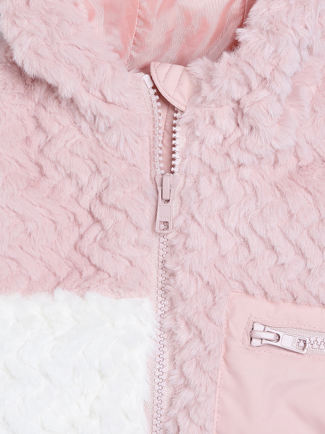 A playful pop of pink! This colorblocked hooded jacket is perfect for girls who love a sporty, stylish look. Made from soft polyester, it features a full zip closure and a comfortable regular fit.