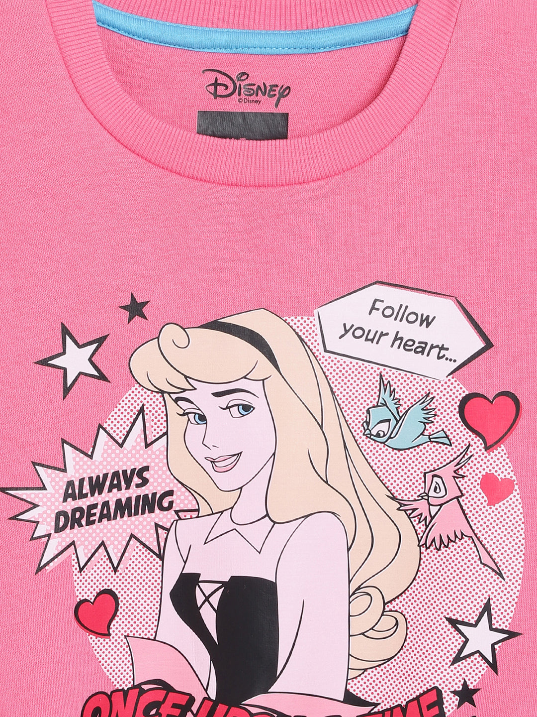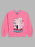 Girls Pink Printed Round Neck Full Sleeves Pullover Style Sweatshirt