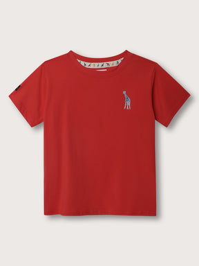 Blue Giraffe Boys Red Solid Round Neck TShirt
