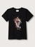 This iconic Blue Giraffe Boys Black Solid Round Neck T-Shirt is made with 100% cotton for a comfortable fit. It features a giraffe foil transfer at the chest for a unique look.
