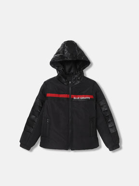 Blue Giraffe Boys Solid Hooded Full Sleeves Jacket