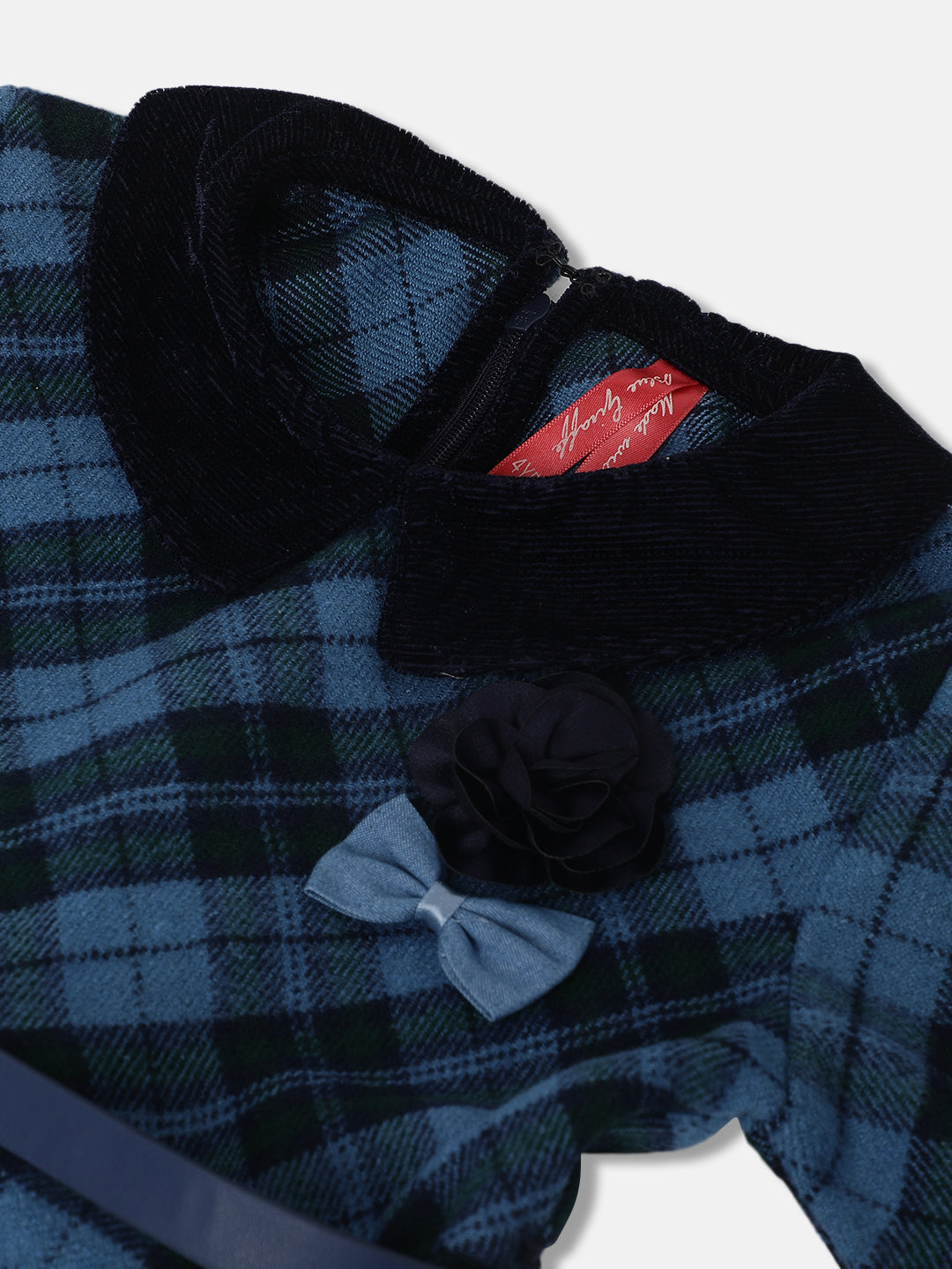 Blue Giraffe Girls Checked Full Sleeves Peter Pan Collar Dress