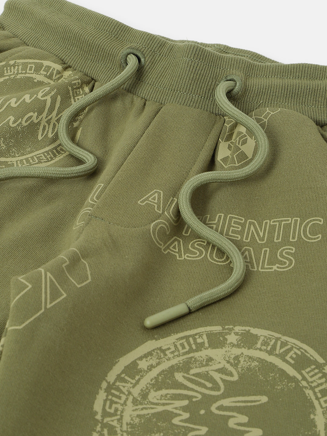 Blue Giraffe Boys Olive Printed Regular Fit Track Pants