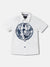 Boys White Printed Spread Collar Short Sleeves Shirt