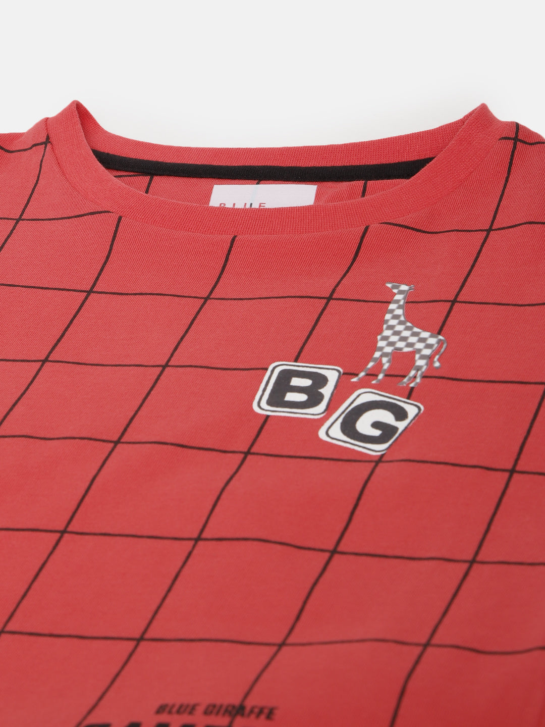 Blue Giraffe Boys Red Checked Round Neck Short Sleeves Tshirt
