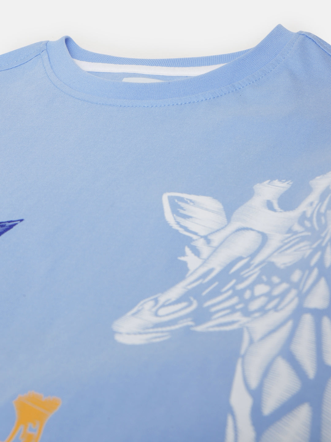 Blue Giraffe Boys Blue Animal Print Round Neck Short Sleeves Tshirt