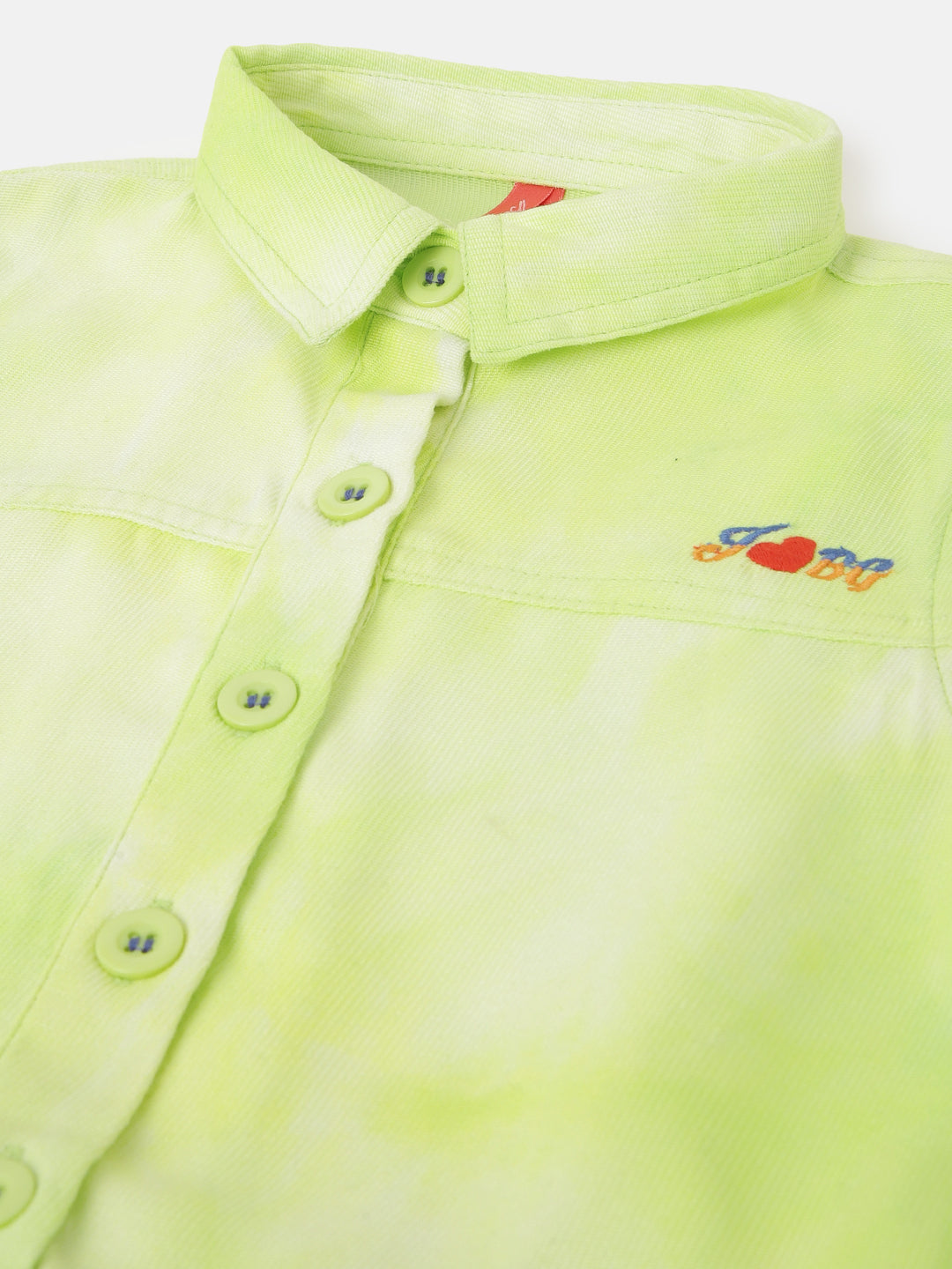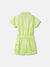 Girls Green Printed Shirt Collar Short Sleeves Playsuit