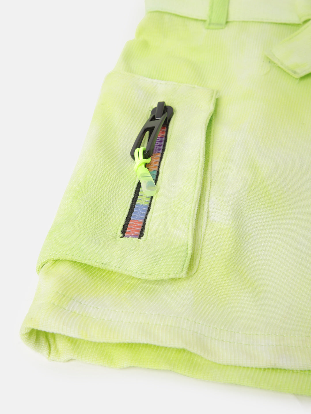 Chic and playful, this green playsuit features a vibrant print, perfect for girls on the go. Its regular fit, short sleeves, and smart shirt collar offer a stylish look, while the soft polyester fabric and convenient button closure ensure comfort and ease of wear.