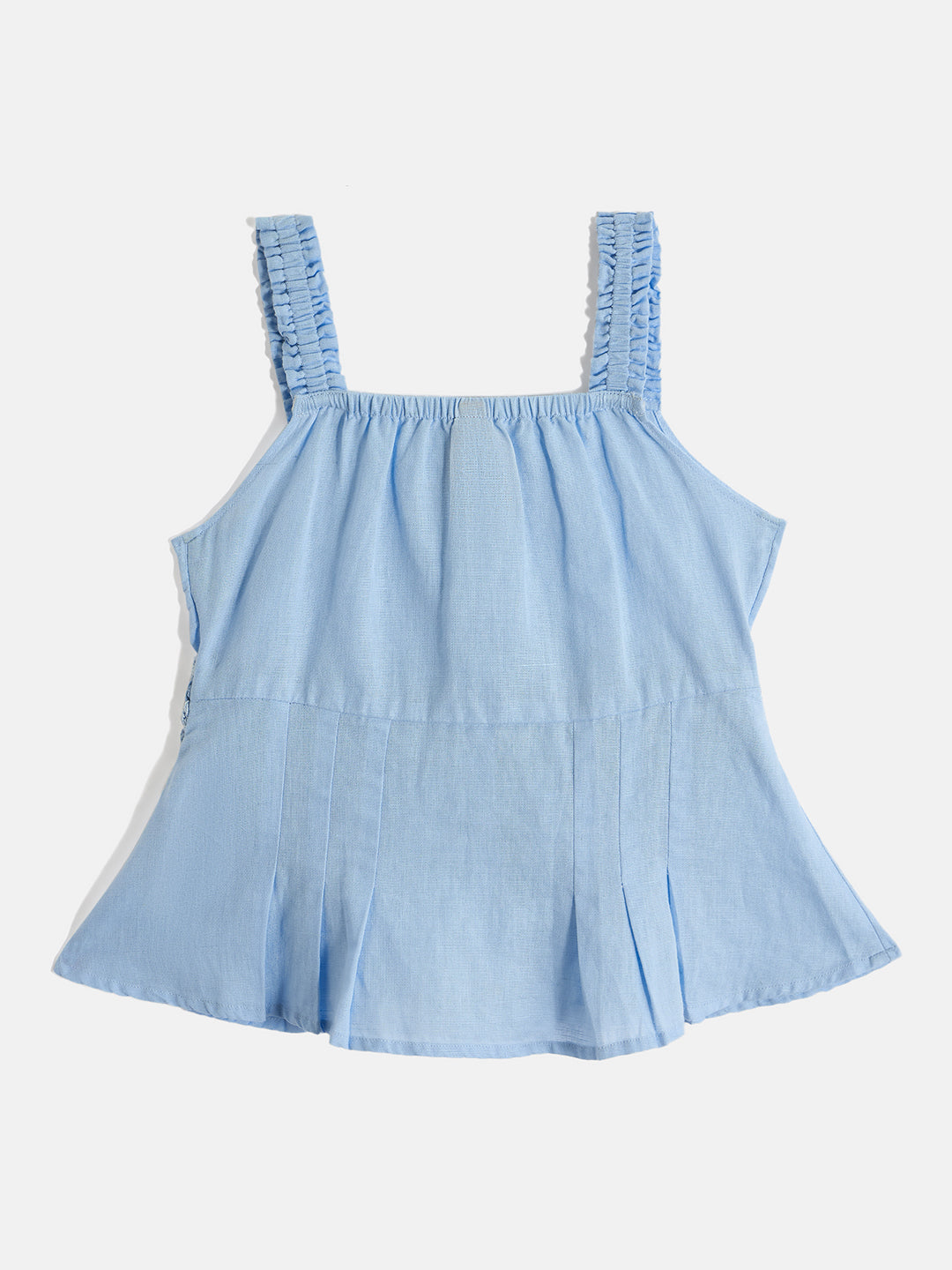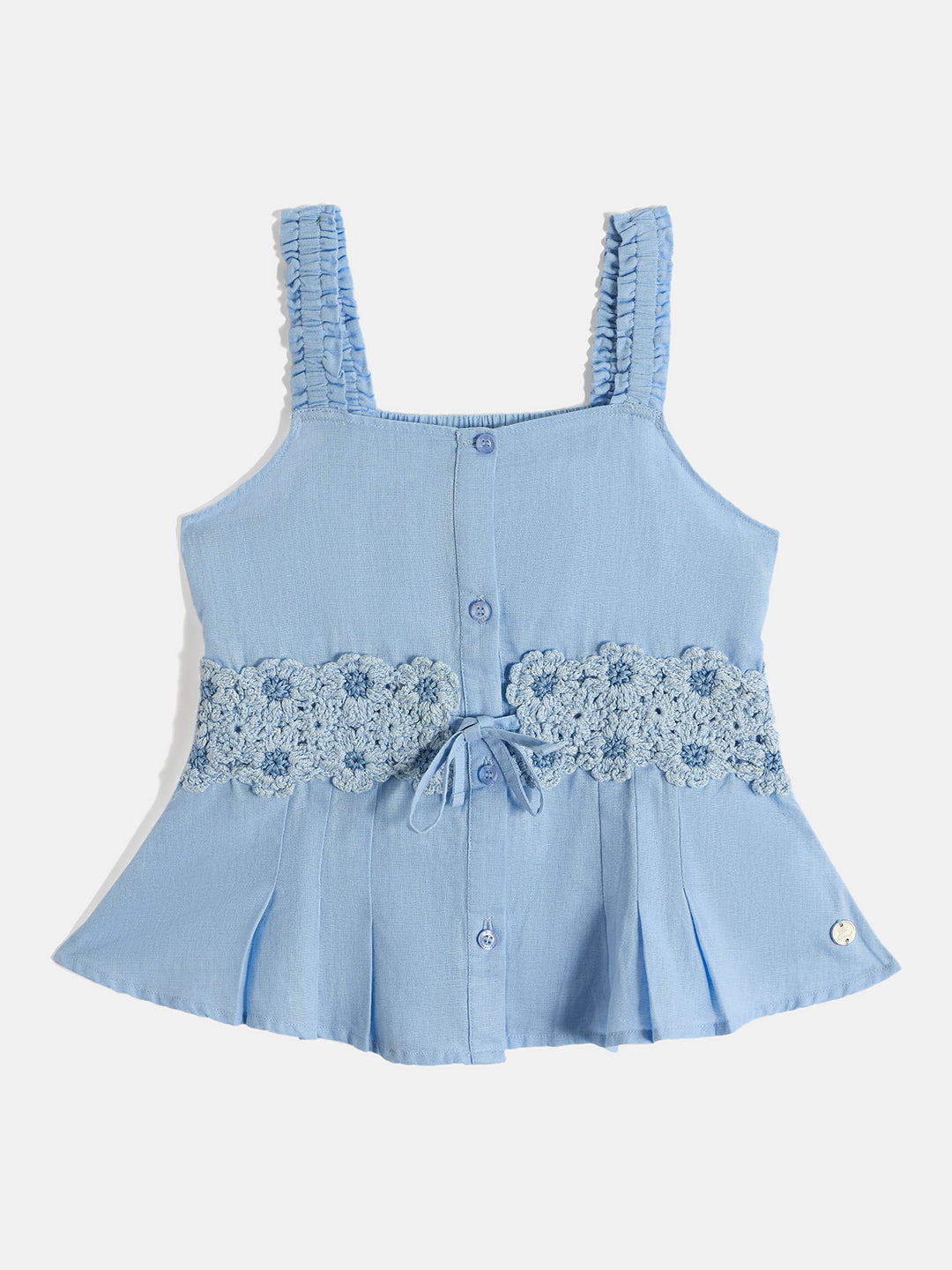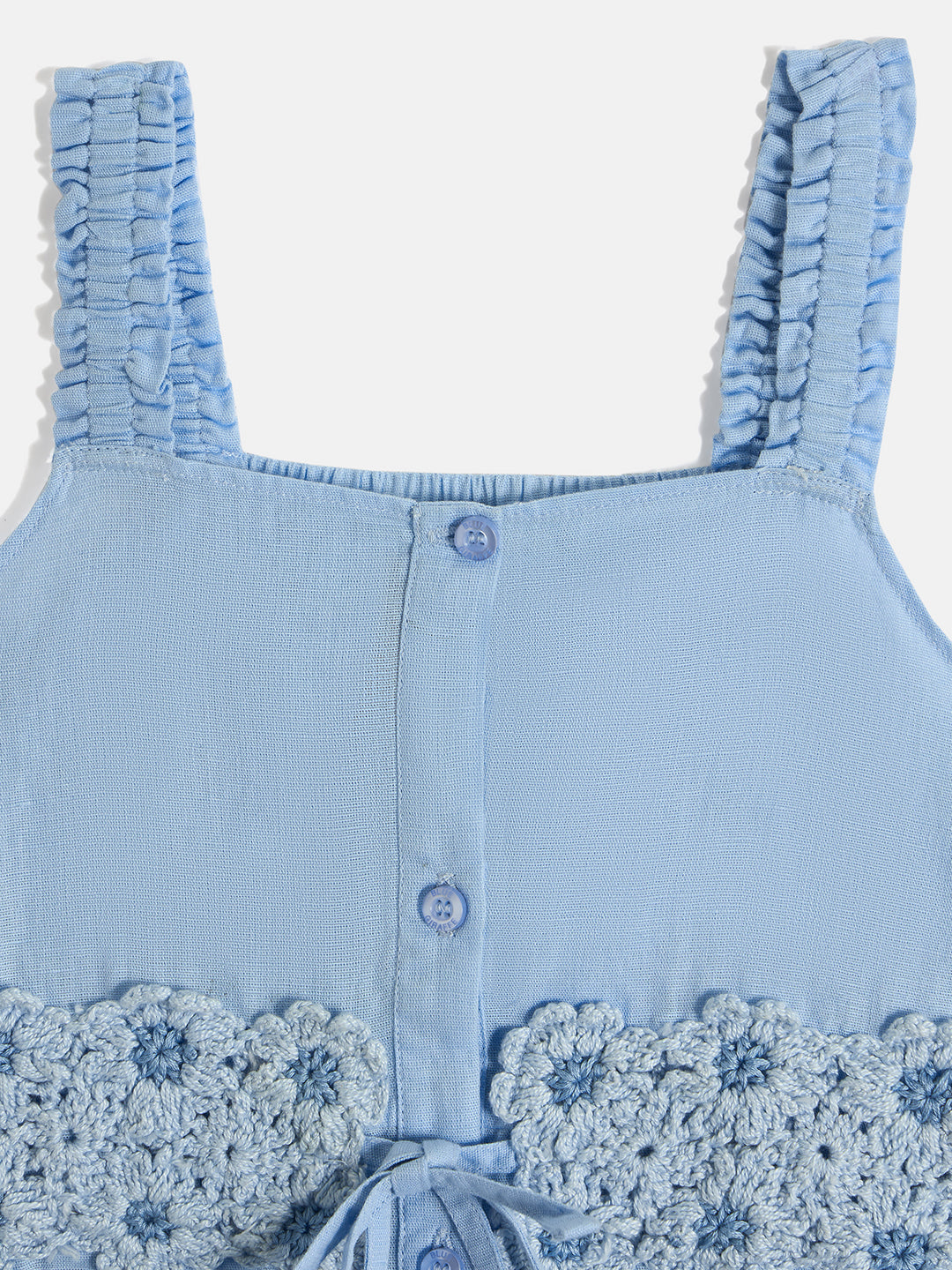 Blue Giraffe Girls Blue Self Design Shoulder Straps Sleeveless Crochet Top
