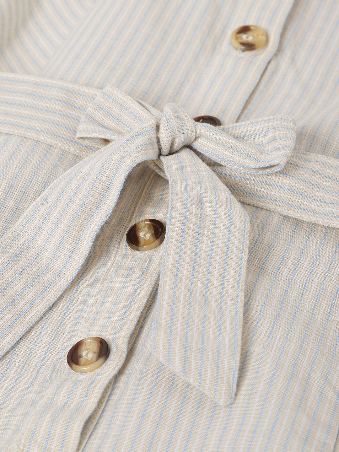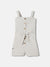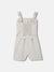 Chic beige striped playsuit for girls. This regular fit, sleeveless outfit features a trendy square neck and button closure. Crafted from comfortable cotton fabric, it's perfect for a stylish, playful look.