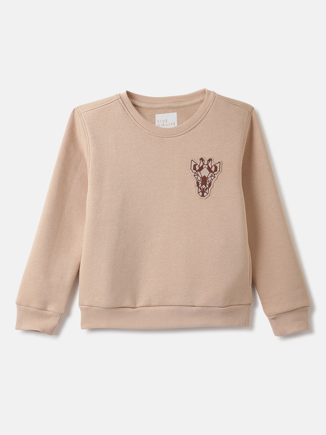 Boys Beige Solid Round Neck Full Sleeves Pullover Style Sweatshirt