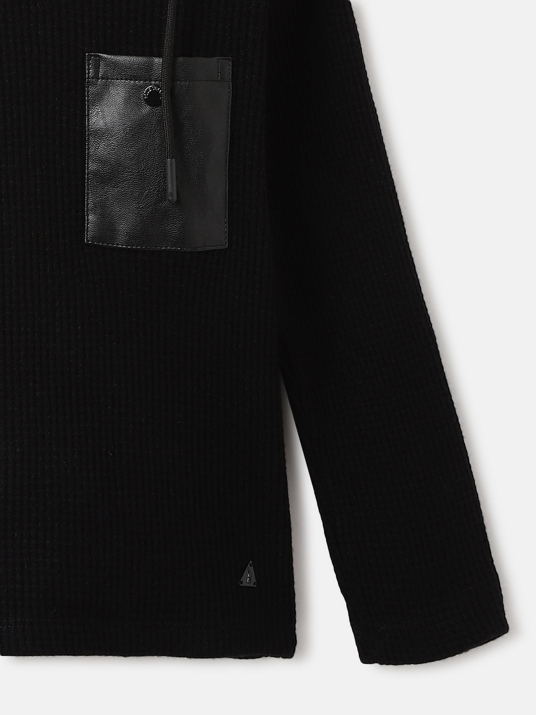 Blackout. A hooded, full-sleeved tee for boys, crafted in soft viscose blend. Regular fit for comfort, pull-on closure for easy wear. Embrace the darkness.