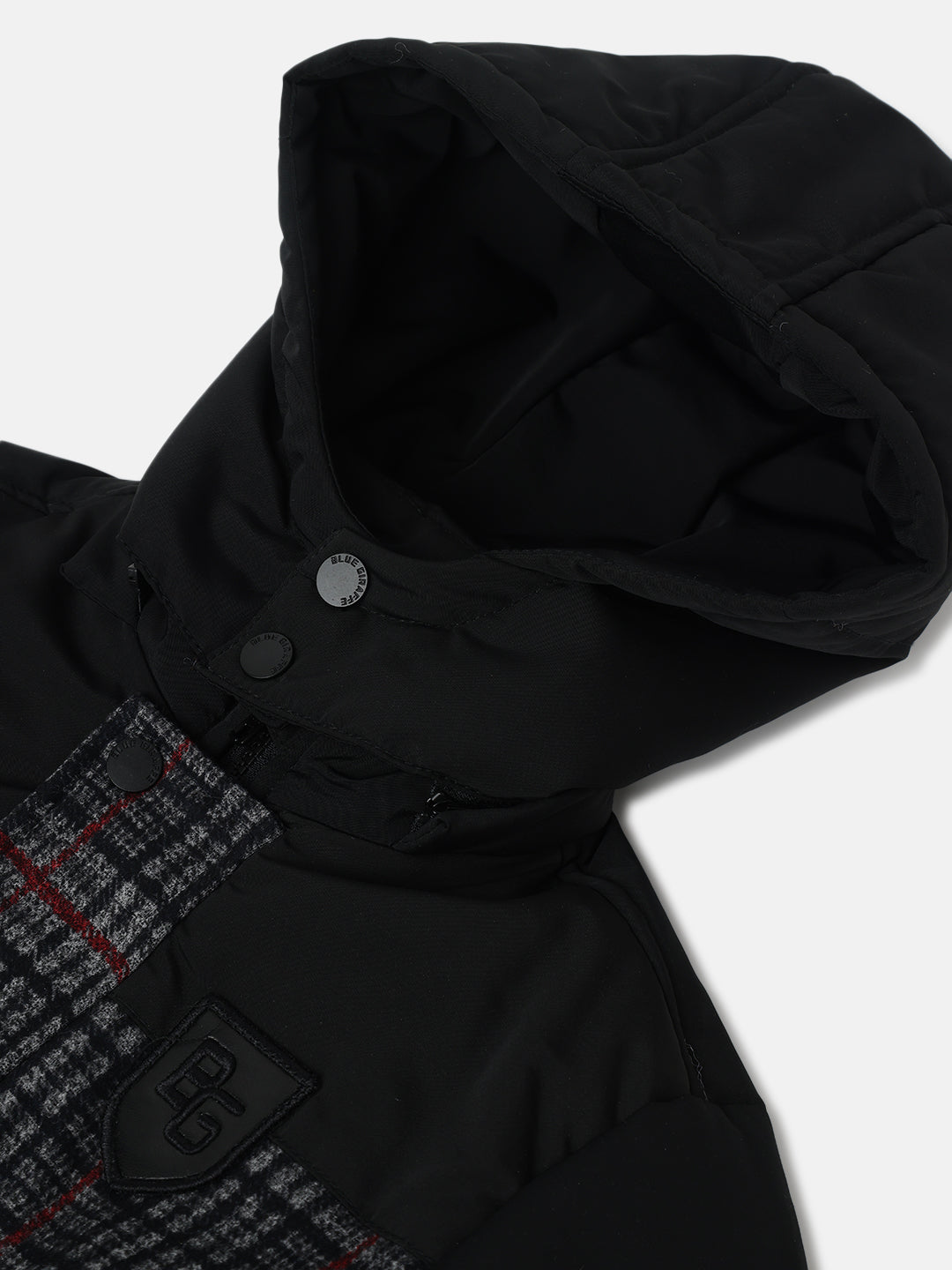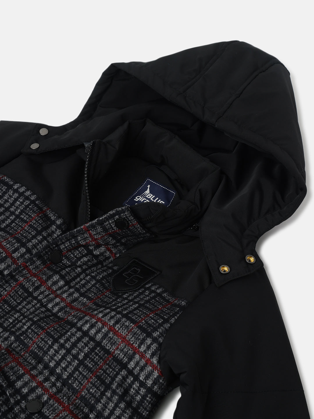 Boys Multi Checked Detachable Hood Full Sleeves Jacket