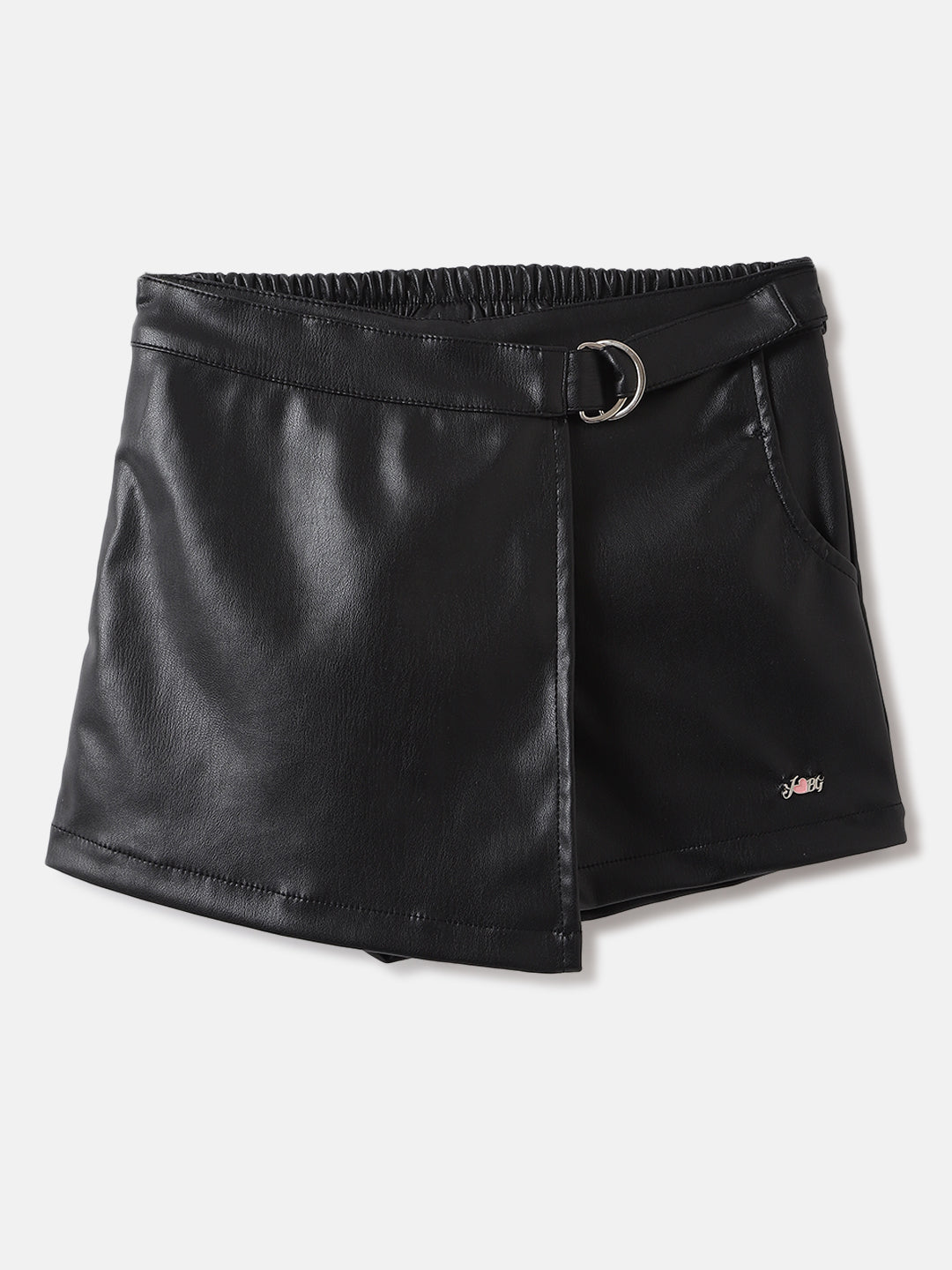 Stylish and comfortable, this black skort is perfect for girls on the go. Featuring a regular fit, mid-rise waist, and elasticated closure, it offers a flattering and secure fit. Made from a durable polyester-coating and PU fabric blend, it's both stylish and practical.