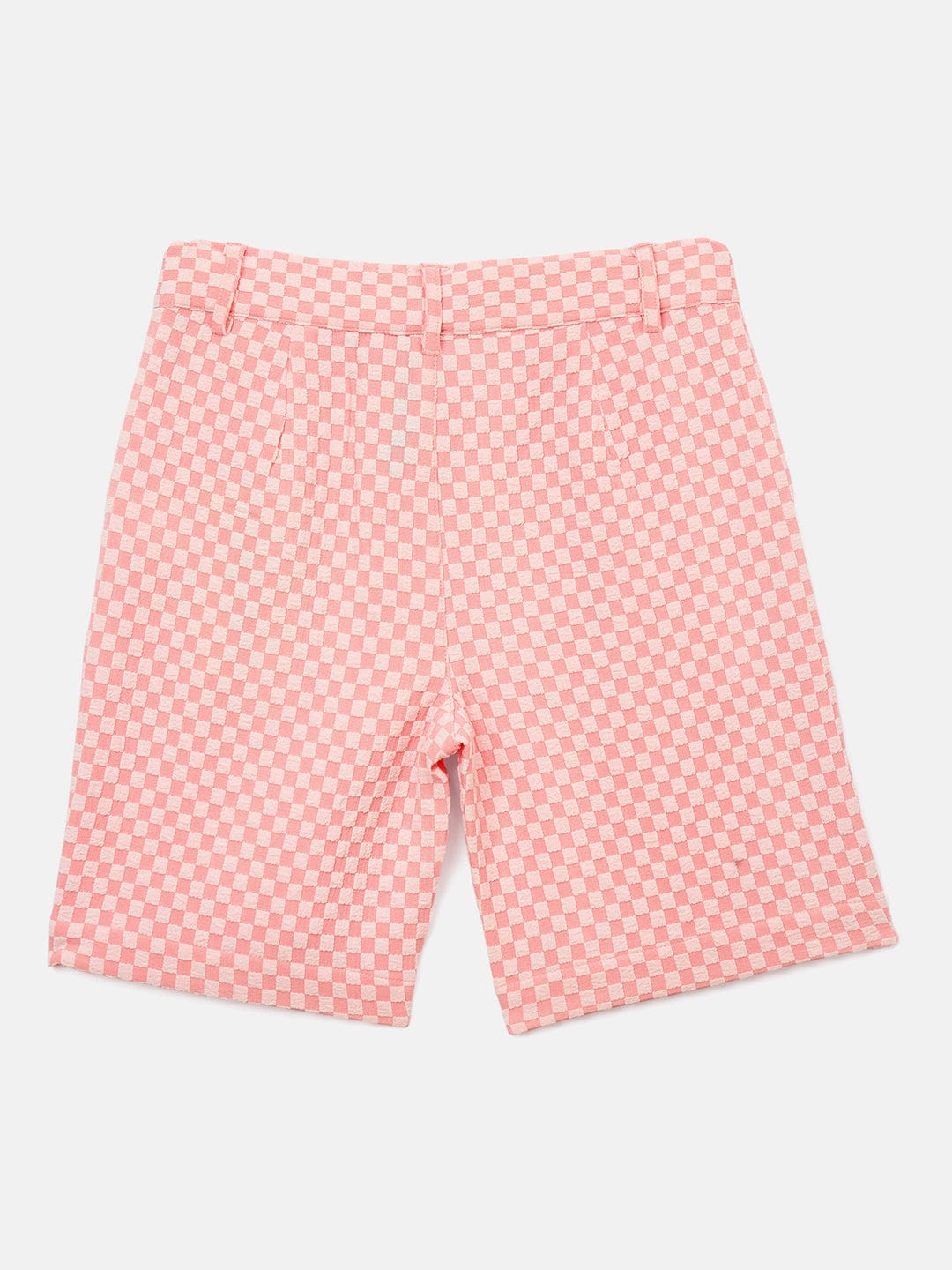 Boys Pink Regular Fit Jacquard Checks Shorts