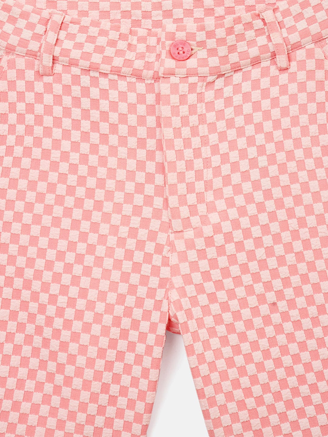 Blue Giraffe Boys Pink Regular Fit Jacquard Checks Shorts