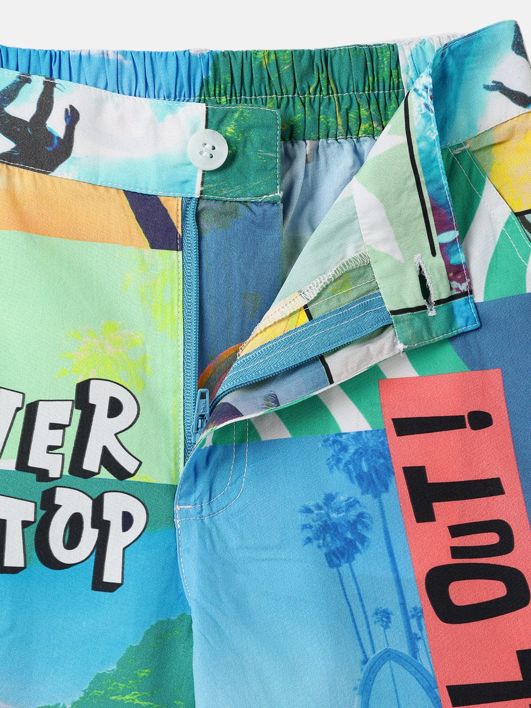 Dive into summer fun with our boys' swim shorts in a vibrant multi-color graphic pattern. These regular fit shorts feature a playful tropical print, perfect for beach days or poolside adventures. Crafted from comfortable cotton fabric, they ensure breathability and ease of movement. The mid-rise design offers a classic look, while the button and zipper closure provide a secure fit. Whether building sandcastles or splashing in the waves, these swim shorts are designed to keep up with all your little one's activities, making them an essential addition to any young adventurer's wardrobe.