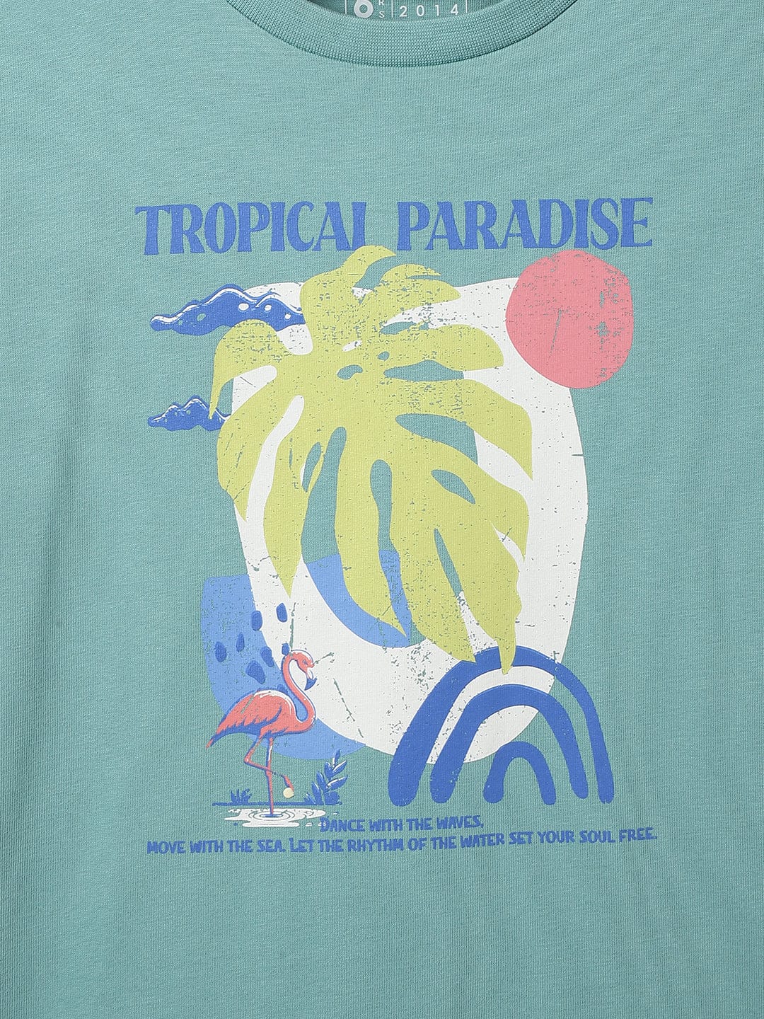 Blue Giraffe Boys Green Solid Crew Neck Tshirt